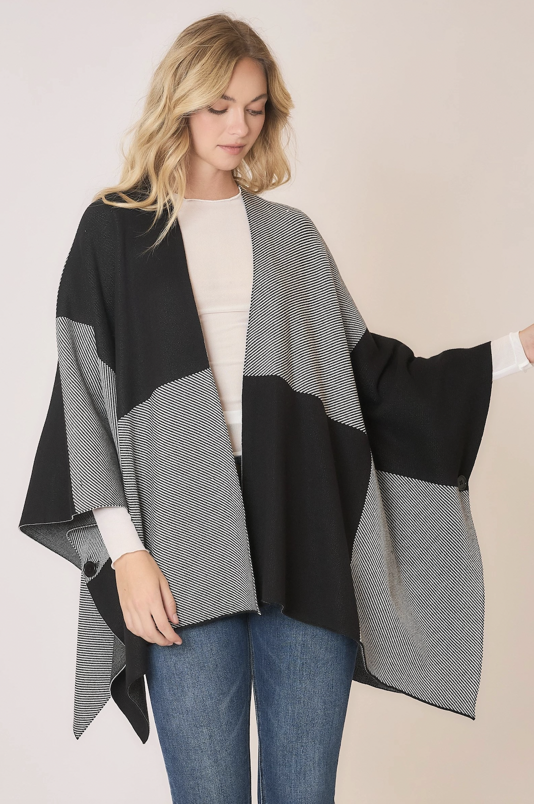 Shop NowWrap yourself in pure comfort with this luxurious heavy knit plaid blanket poncho—basically the fashion equivalent of a warm, stylish hug. The rich, textured knit drapes beautifully, while the armhole button closures keep everything in place so you can move with ease (no constant adjusting required). Bold plaid patterning adds a touch of timeless charm, making it the perfect layer for chilly strolls, festive outings, or those days you want to look effortlessly polished while staying wonderfully snug. A true cold-weather favorite in the making!
