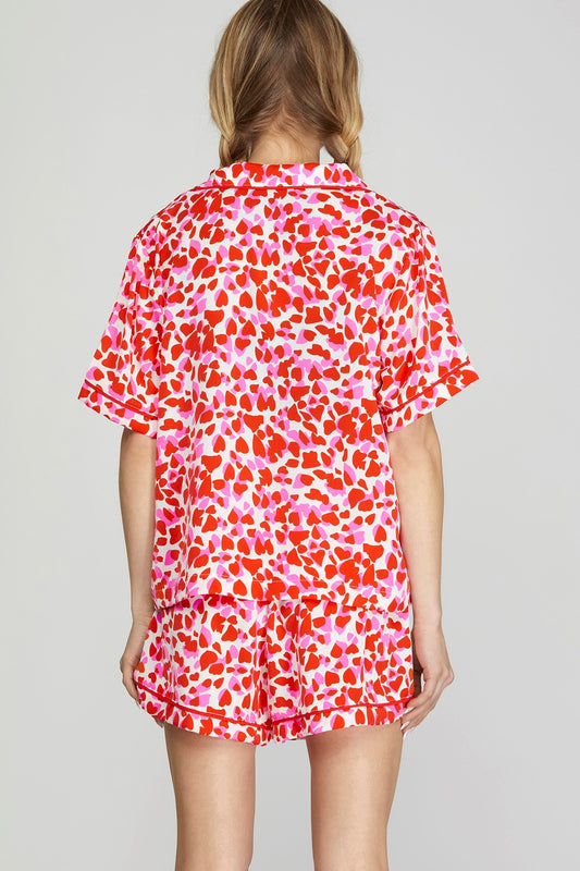 Hearts Print Pajama Set