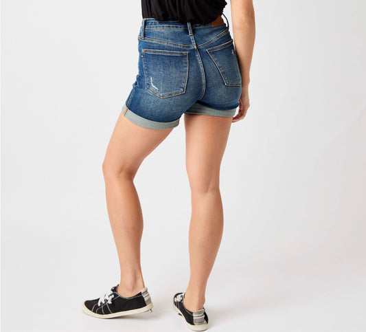 High Waist Tummy Control Vintage Wash Cuffed Shorts
