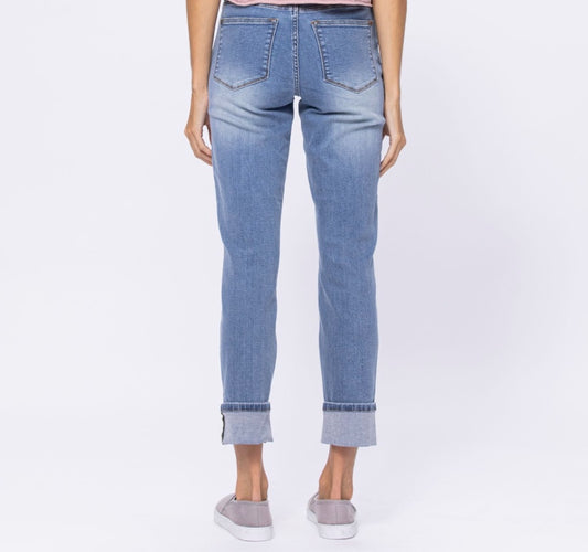Judy Blue High Waist Vintage Wash Double Roll Cuff Boyfriend Jeans