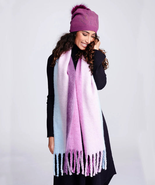 Purple Lilac Ombre Blanket Scarf With Tassel Fringing