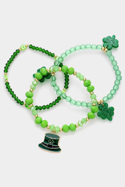 St Patrick's Day Shamrock Clover Layered Bracelet