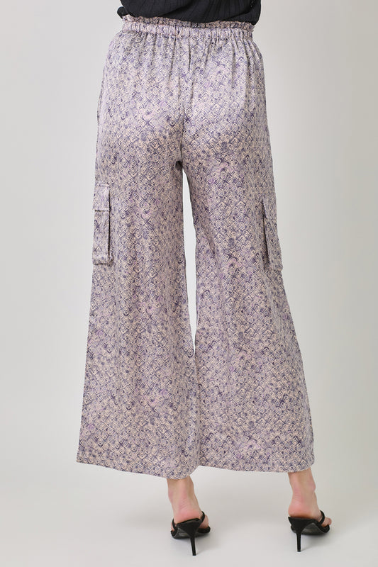 Satin Printed Wide Leg Cargo Pants