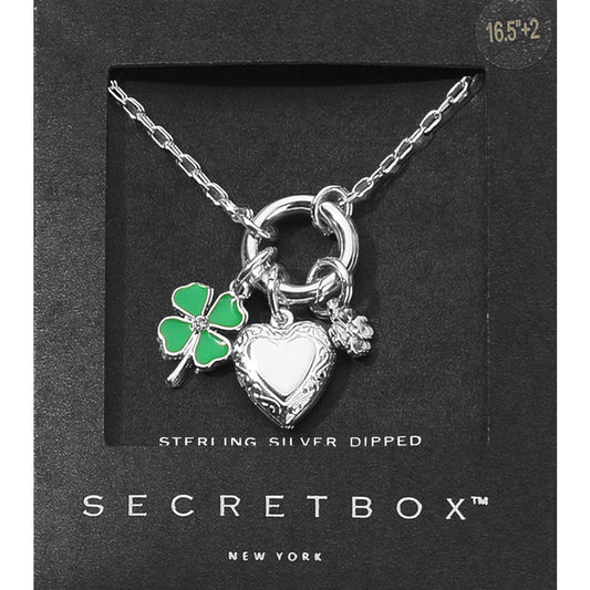Sterling Silver Dipped Enamel Clover Metal Heart Locket Pendant Necklace