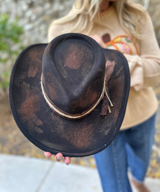 Vintage Western Distressed Band Rustic Cowgirl Fedora Hat