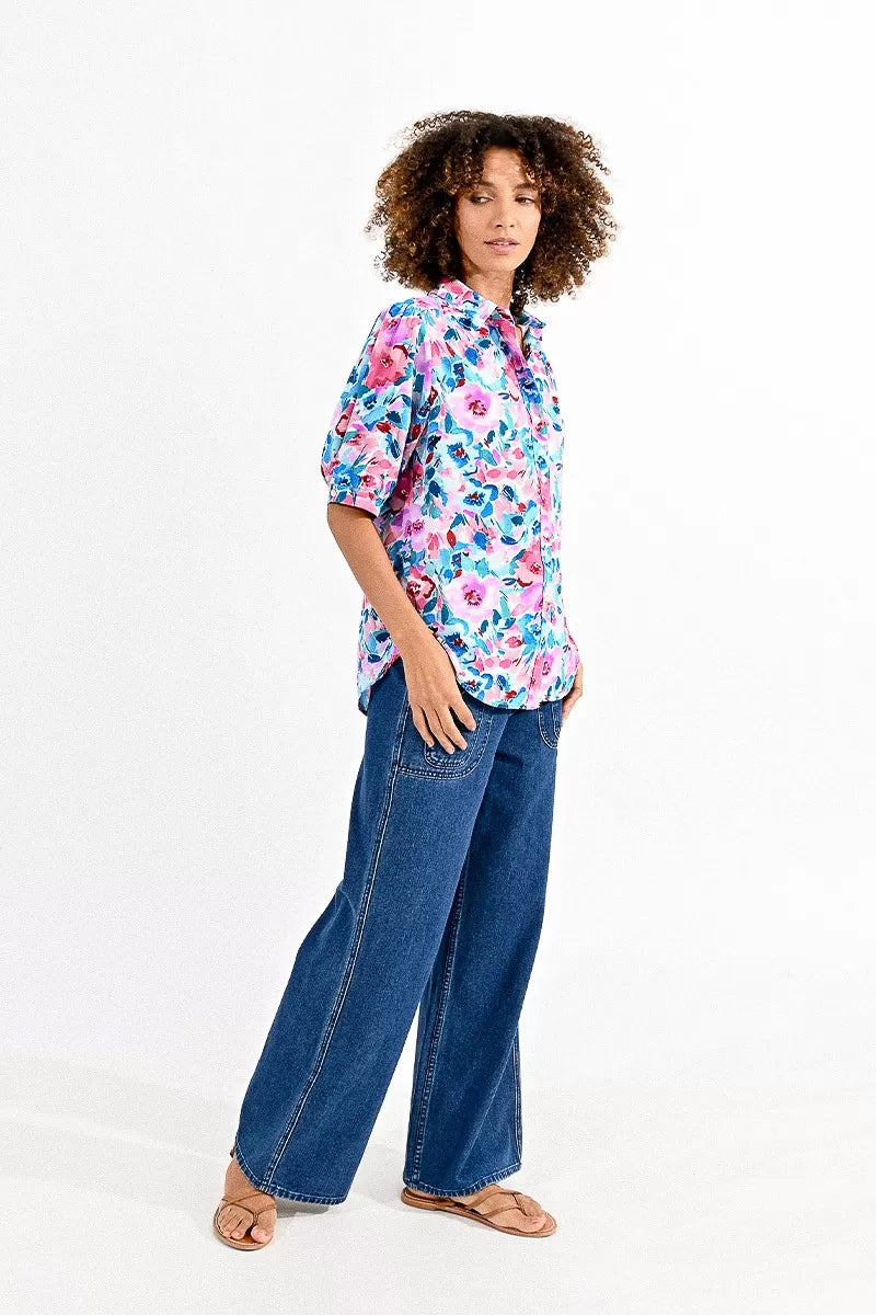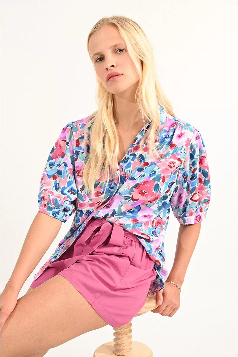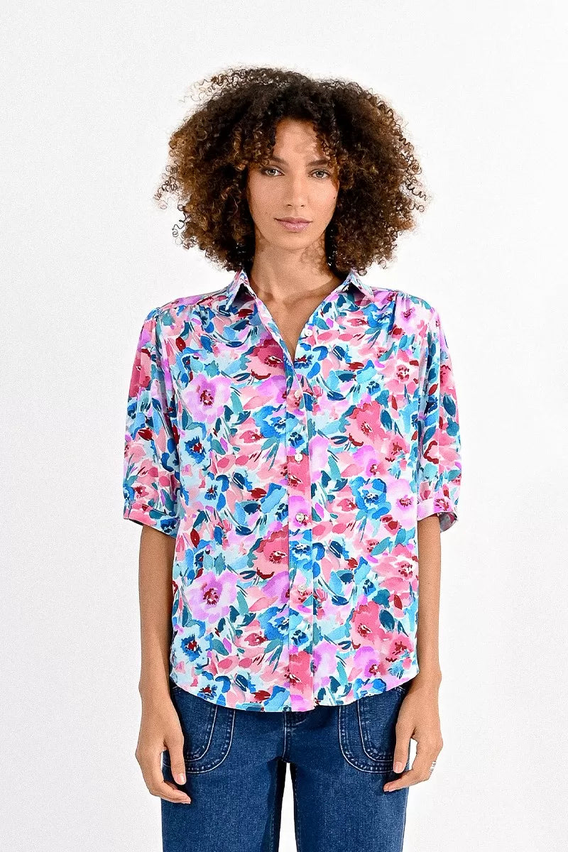 Dress up in a blooming breeze with our fresh floral shirt, perfect for a playful summer look. The short balloon sleeves add a touch of whimsy to this colorful piece. Embrace your unique style with this quirky and fun addition to your wardrobe. (No flowers were harmed in the making of this shirt! ๐ธ๐ผ)
