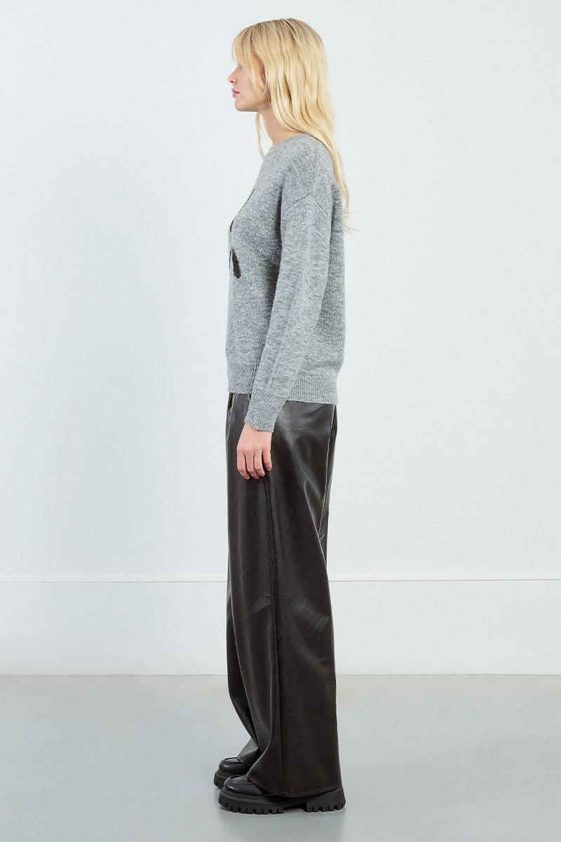 Soft, chic, and just the right amount of girly—this heather grey round-neck sweater is finished with an adorable bow accent on the front for a playful twist. Easy to dress up or down, it’s the cozy-cute piece your fall closet’s been waiting for. 💕