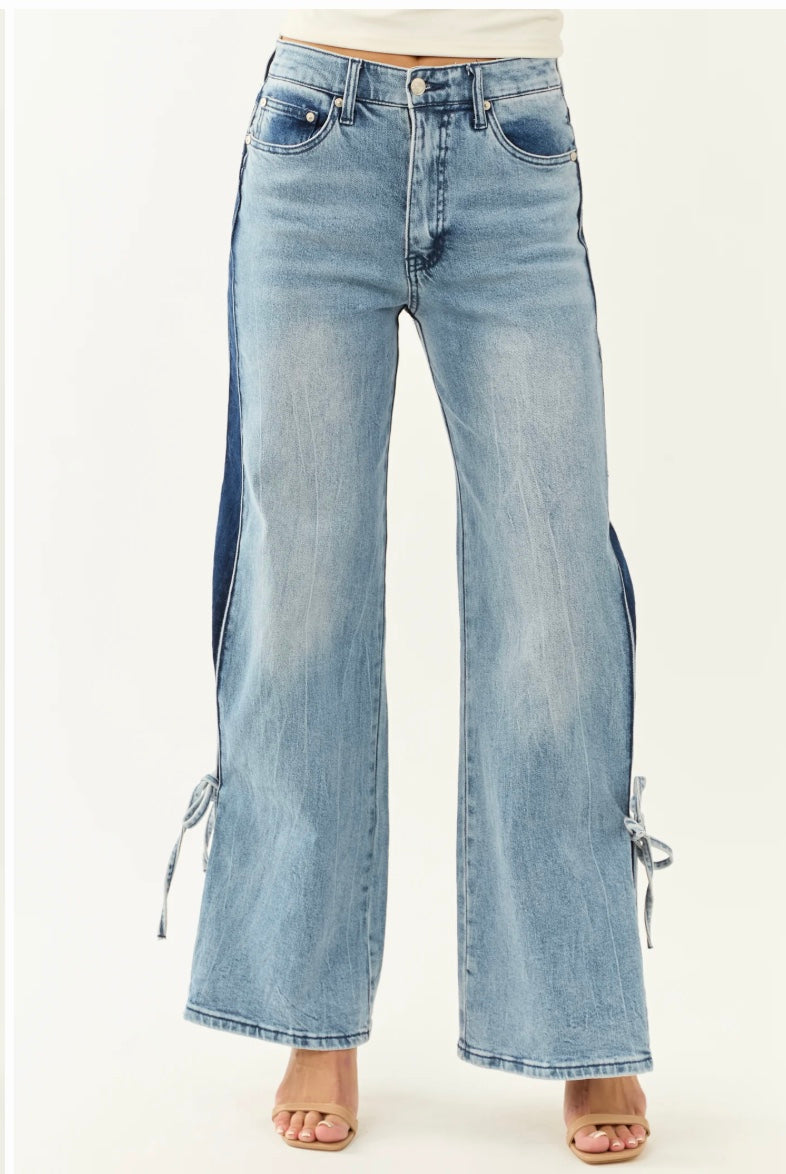 Step up your style game with these high-rise wide leg pants featuring a sleek contrast design and a flattering ribbon tie waist. Tailored yet effortlessly cool, they pair perfectly with everything from a fitted tee to a flowy blouse. Comfortable, polished, and oh-so-stylish—these pants are your new go-to for workdays, weekends, and everything in between.