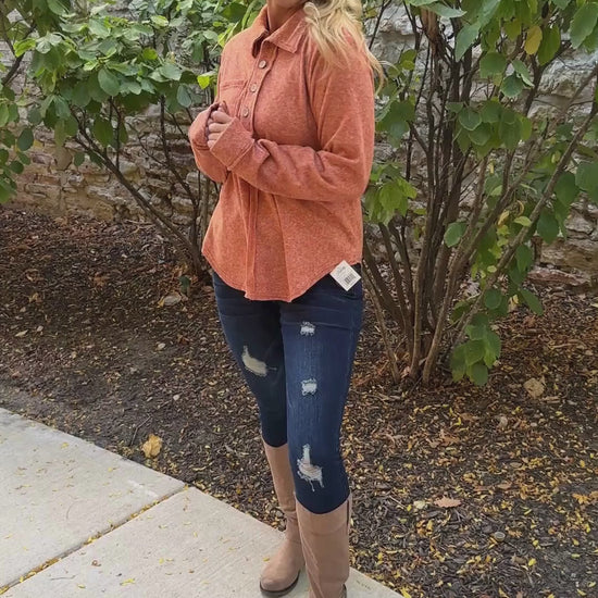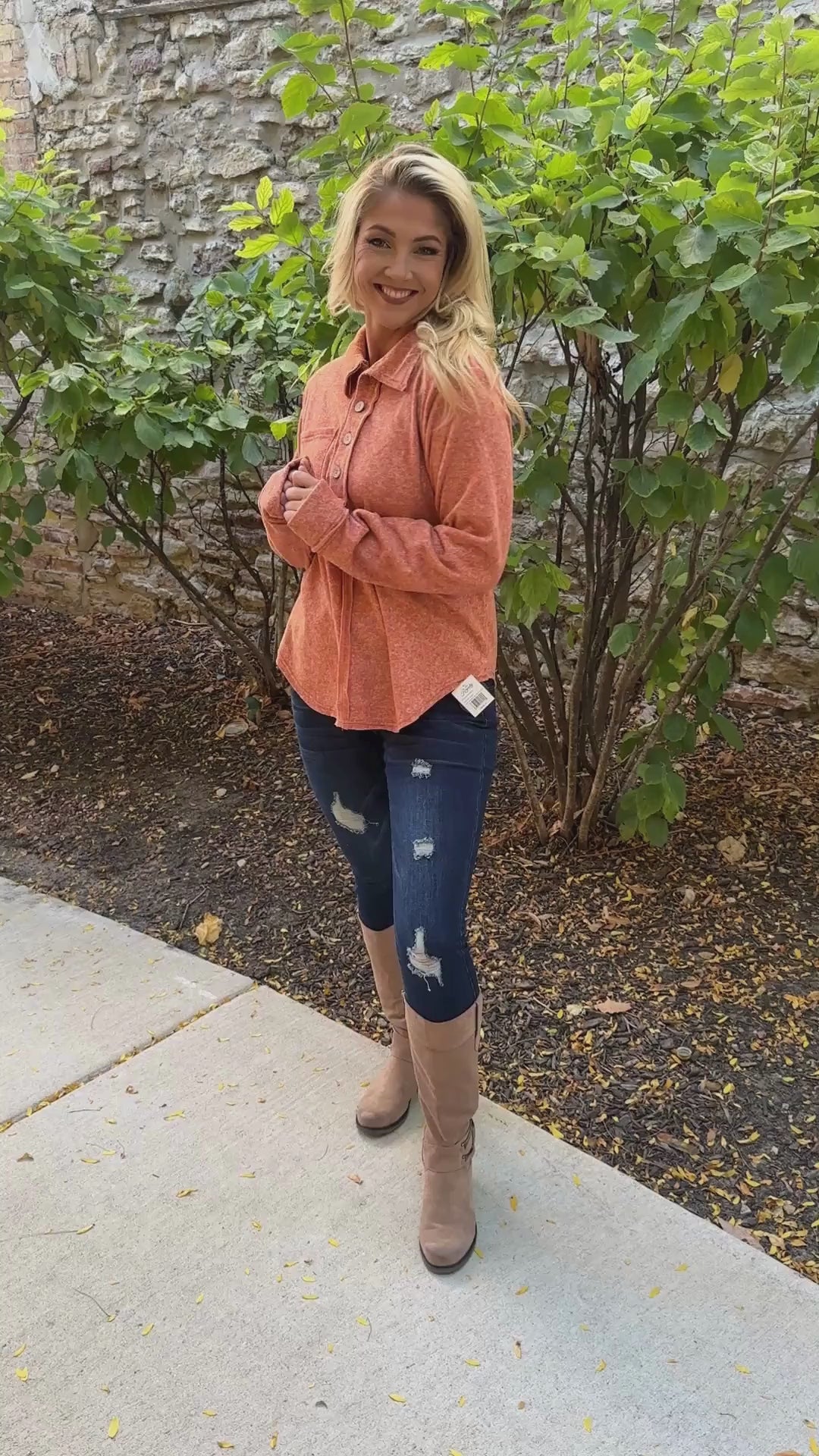 Elevate your everyday style with this brushed Hacci collared top. Featuring a soft, lived-in feel with button-front detailing and a relaxed fit, it’s the perfect blend of cozy comfort and polished charm. Dress it up with denim and boots for fall or keep it casual with leggings—either way, this versatile piece will be your new go-to.