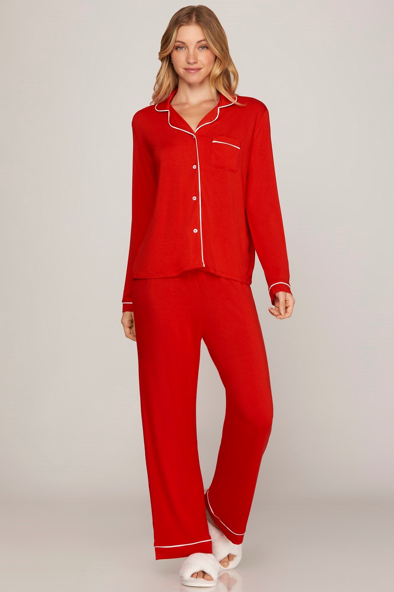 Stylish and comfortable, our Stretch Knit Pajama Set is perfect for lounging or sleeping. Made from a soft and stretchy fabric, it moves with you for ultimate comfort. No need to sacrifice style for coziness with this playful set. (Go on, get your pajama-party on!)