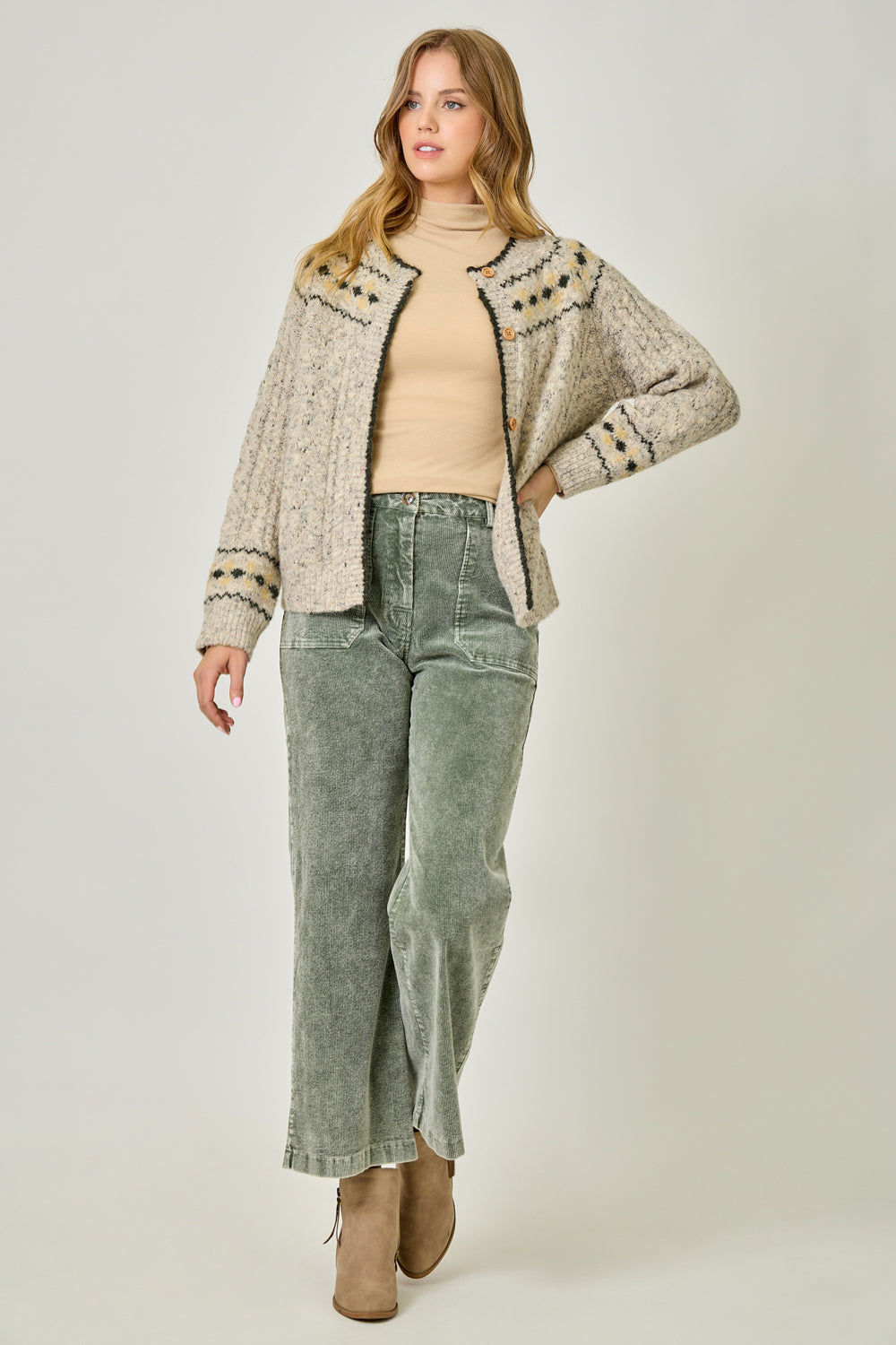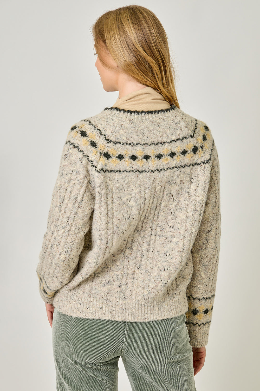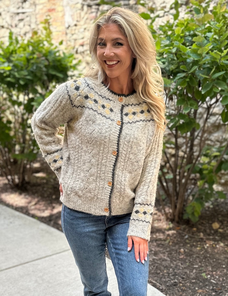 This Fair Isle Cardigan Sweater features a classic patterned design that adds timeless charm to your wardrobe. Crafted for comfort and warmth, it’s perfect for layering during cooler days. The button-up front allows easy wear, making it a versatile piece for both casual and dressier occasions.