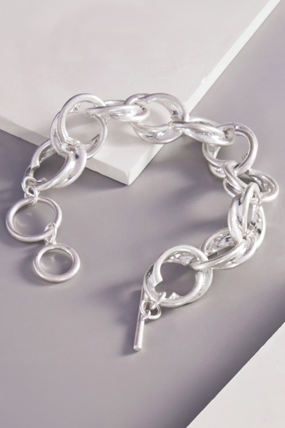 Add some flair to your wrist with our Fancy Metal Chain Link Toggle Bracelet! This beautifully crafted accessory features a unique and eye-catching chain link design and a convenient toggle closure for easy wear. Elevate any outfit with a touch of style and sophistication.