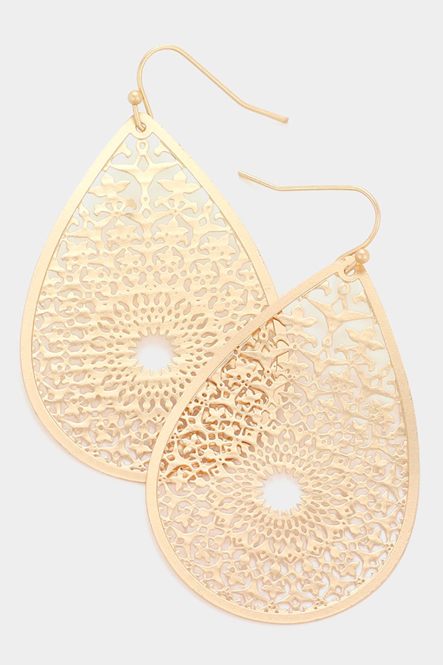 Filigree Brass Metal Teardrop Dangle Earrings