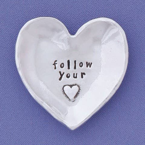 Small pewter heart shaped charm bowl with the wording follow your heart.