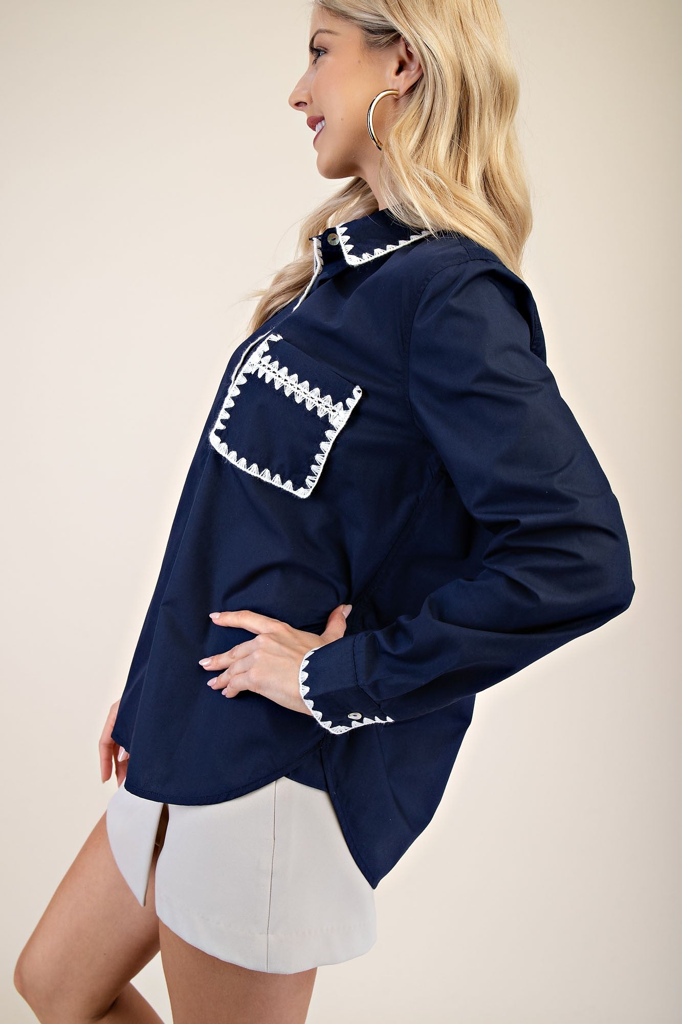 Button up in style with our Front Button Embroidered Shirt. With embroidered accents and easy front button closure, this shirt is perfect for any occasion. Stay fashionable and comfortable with this quirky and fun addition to your wardrobe.