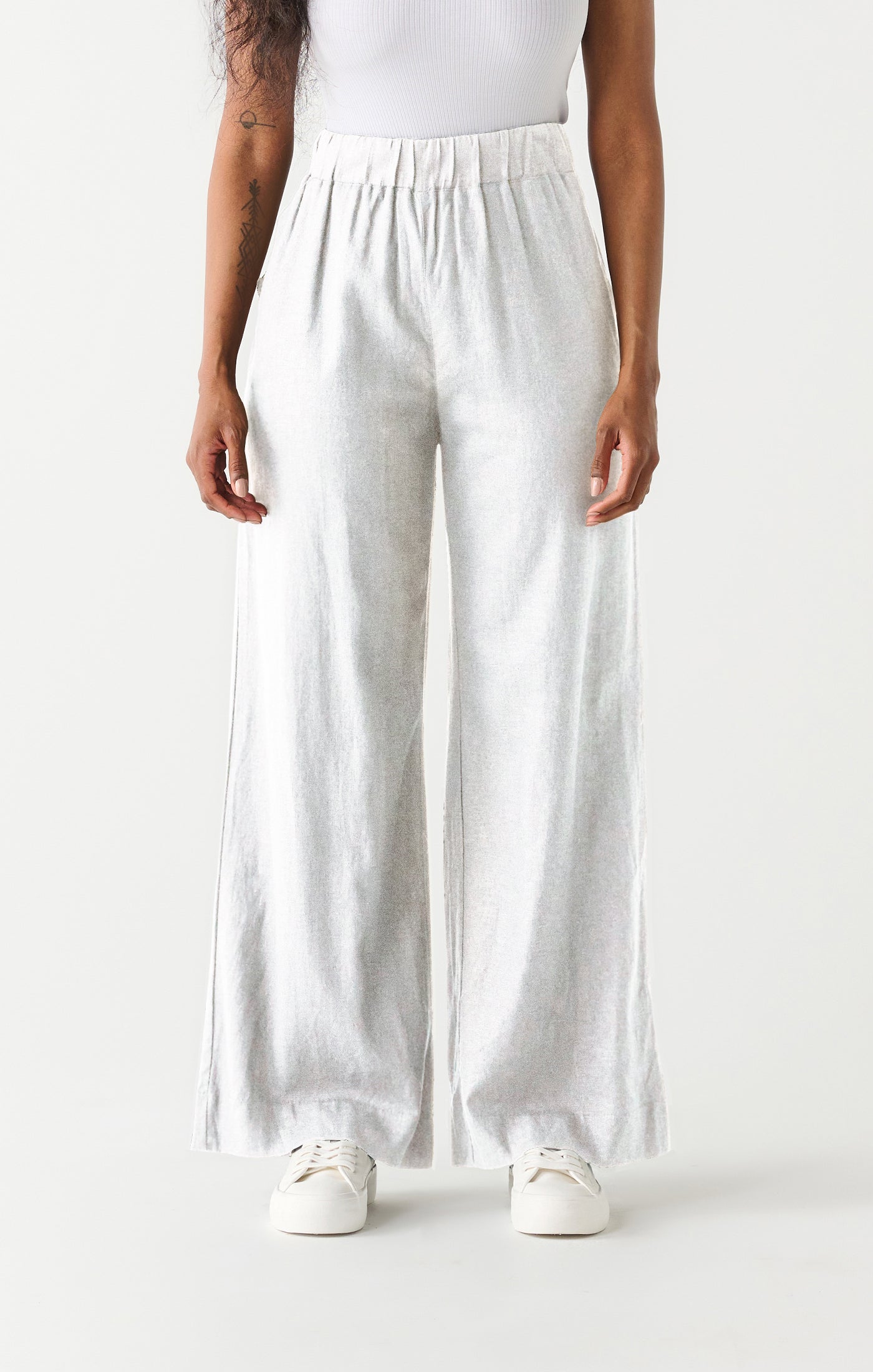These pants are the perfect blend of comfort and style with their high waist and wide leg design. The elastic waist adds an extra level of ease to your outfit, making them a must-have for any wardrobe. Say goodbye to discomfort and hello to a fashionable and relaxed look!