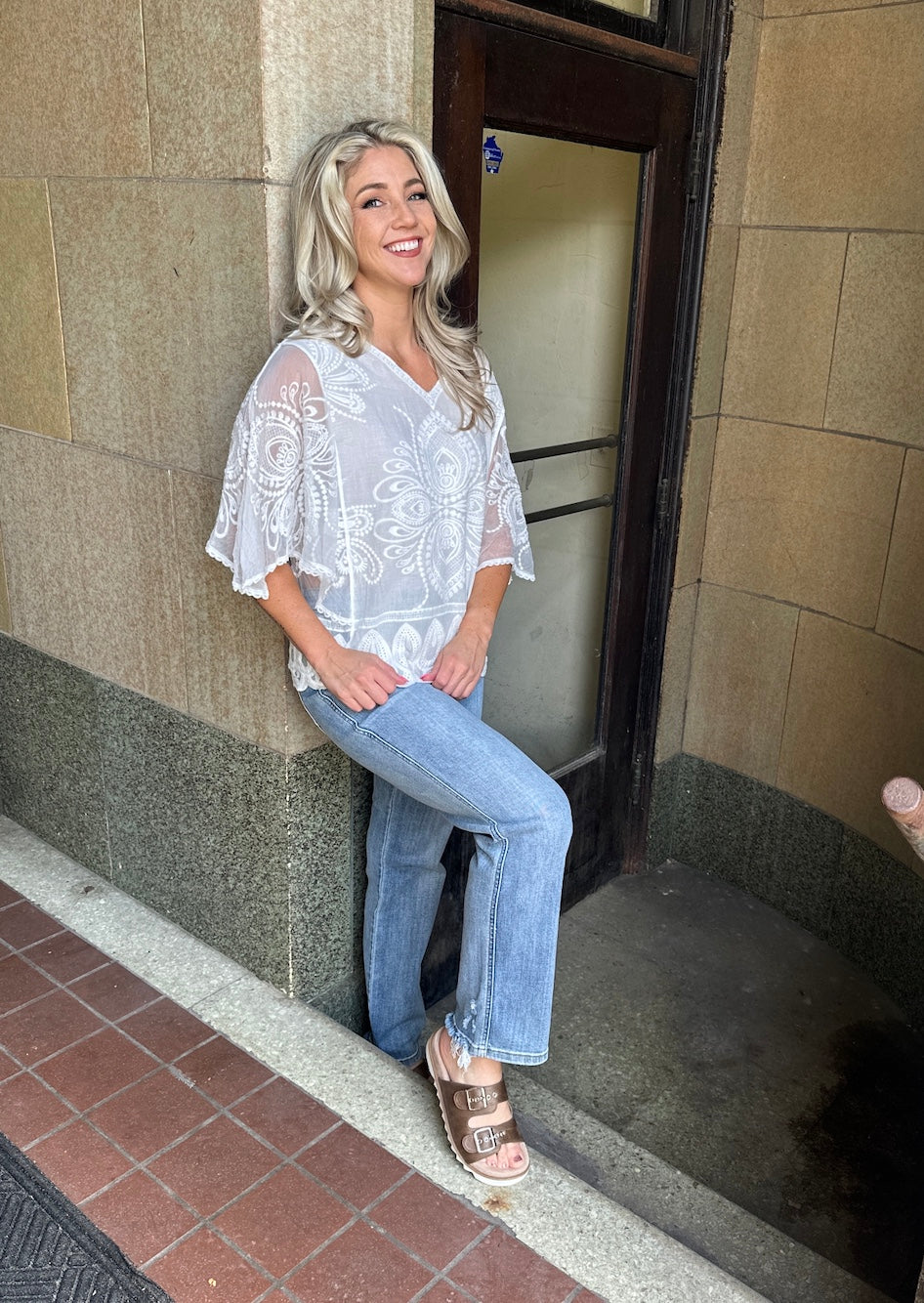 Be the cool dad (or mom!) on the block with our Judy Blue mid rise jeans featuring a yoke and cell phone pocket. Perfect for any on-the-go parent, these jeans provide both style and function.