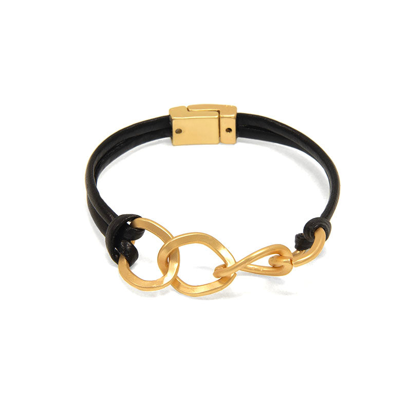 This exquisite Leather Bracelet with Gold Links adds a touch of sophisticated, timeless elegance to your ensemble. Crafted from luxurious leather and opulent gold links, this piece is perfect for any occasion and will ensure you stand out.