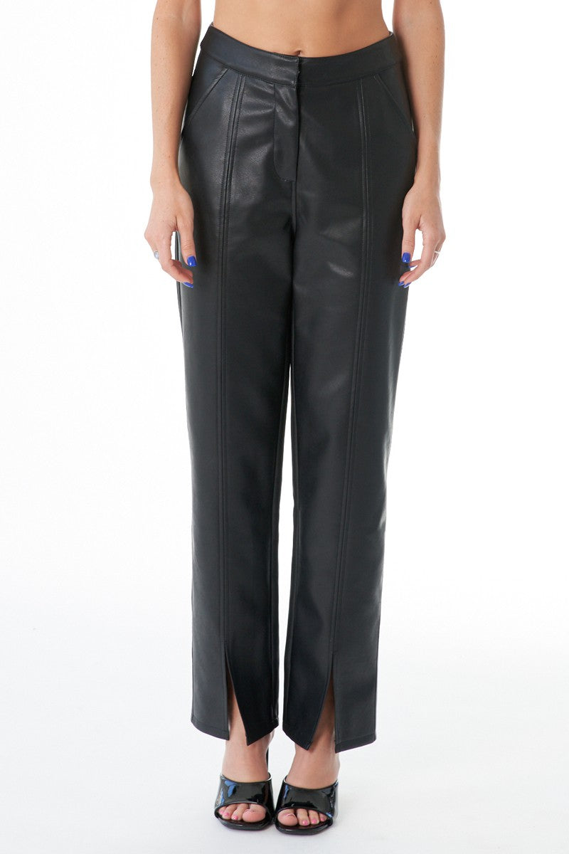 Leather Pants with Slit Hem Detail
