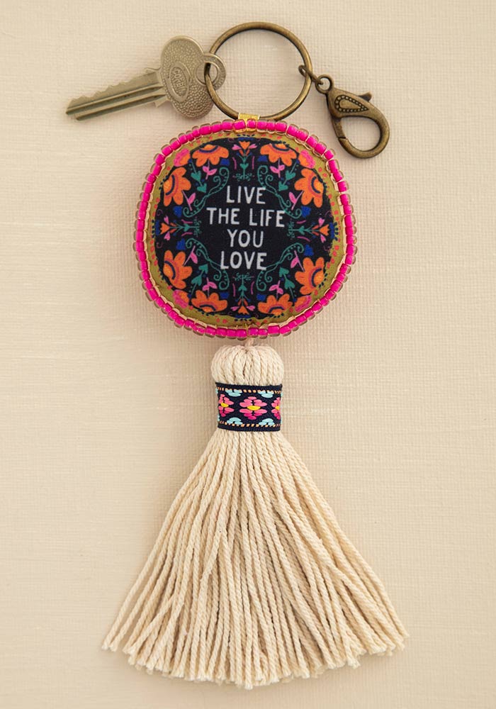 Make a statement anywhere you go! We are completely in LOVE with our new mantra keychains!! This Live The Life Mantra Keychain features beaded details and bright pop tassels, making it such a fun and colorful little addition to any key ring or accessory! Oh, and we love how easy it is to clip on and off!