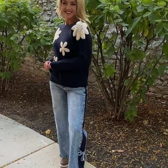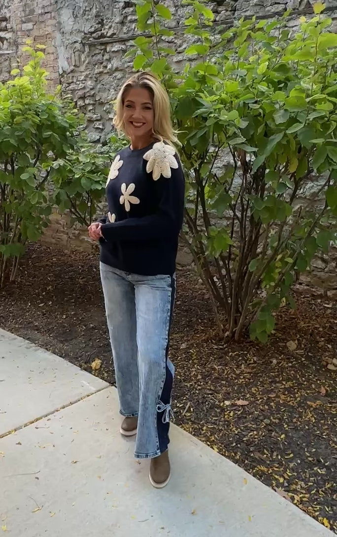 Delicate crochet meets cozy charm in this navy floral sweater. The intricate open-knit design adds a touch of romance, while the rich navy hue makes it effortlessly versatile. Layer it over a cami or dress it up with a skirt—this sweater brings just the right mix of texture, detail, and everyday wearability. 🌸