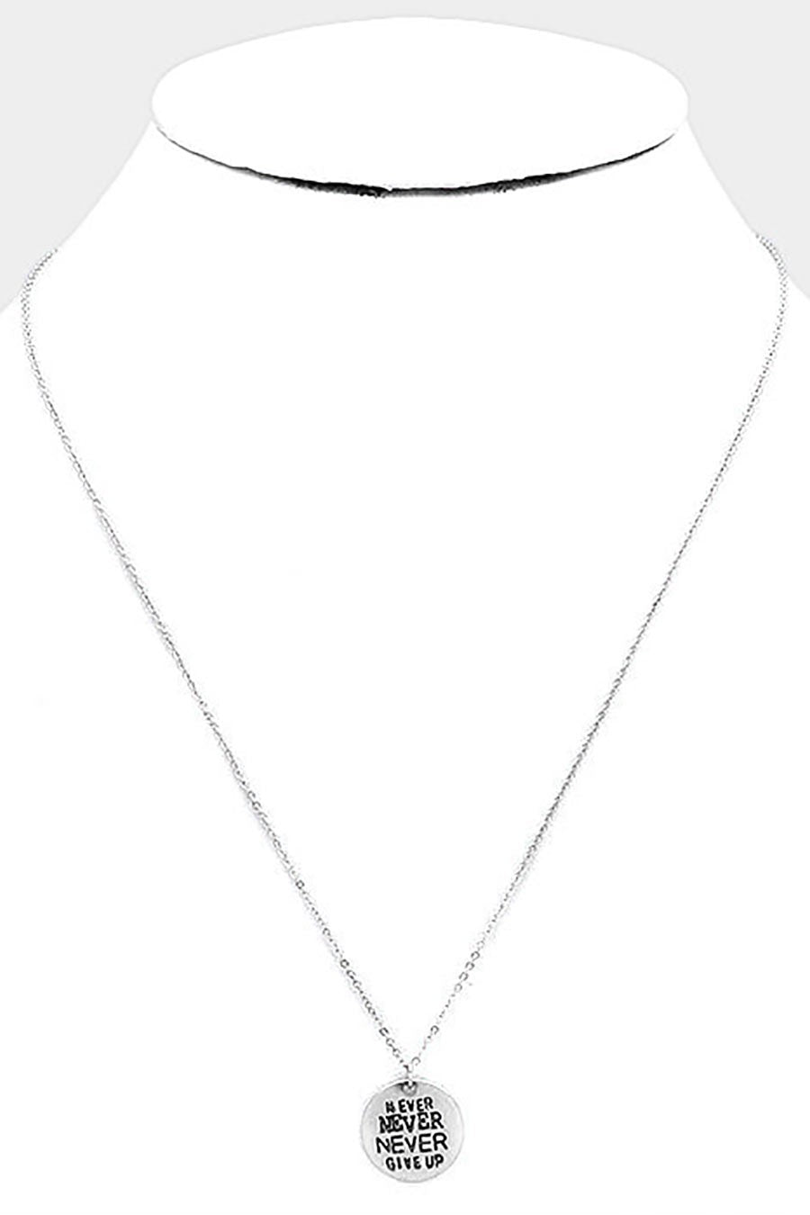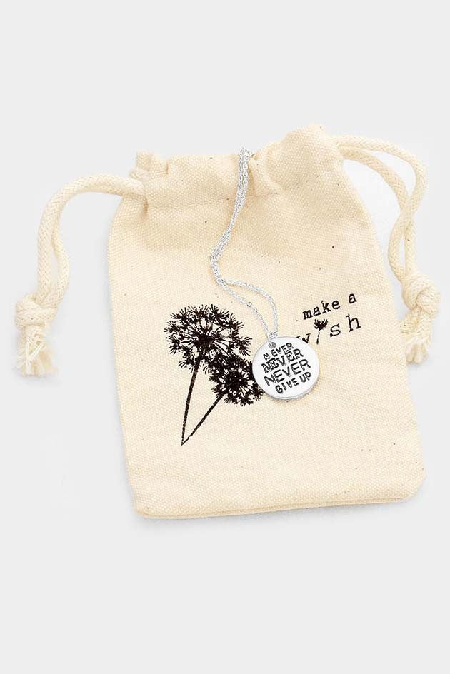 Never Give Up Disc Pendant Necklace Gift Bag Set
