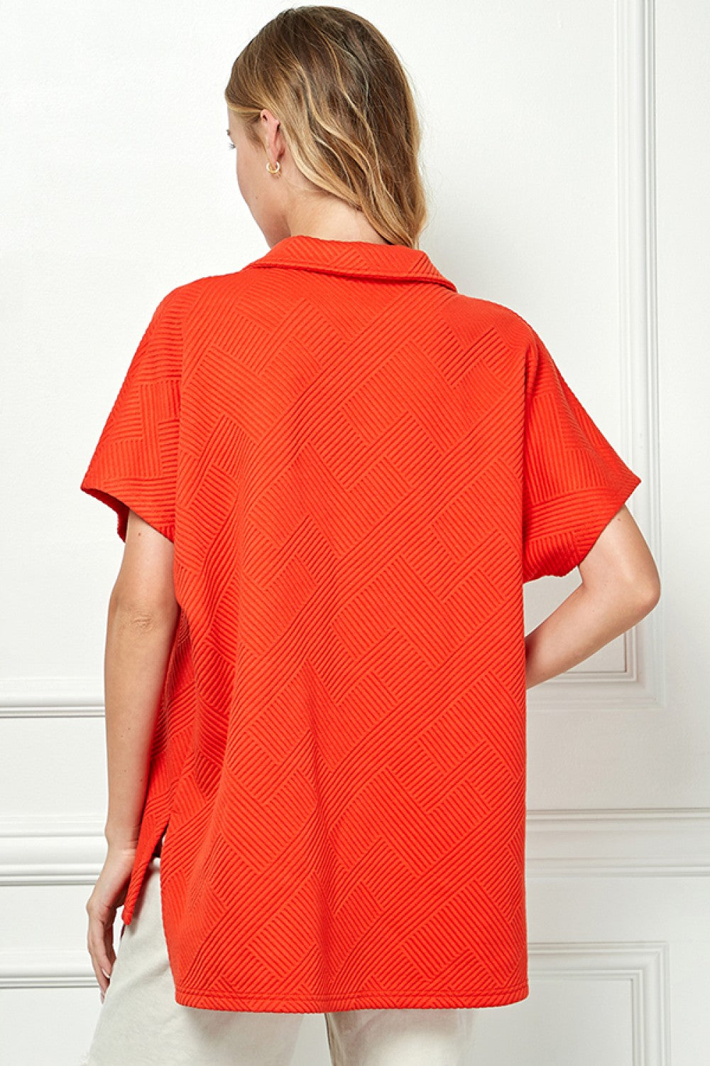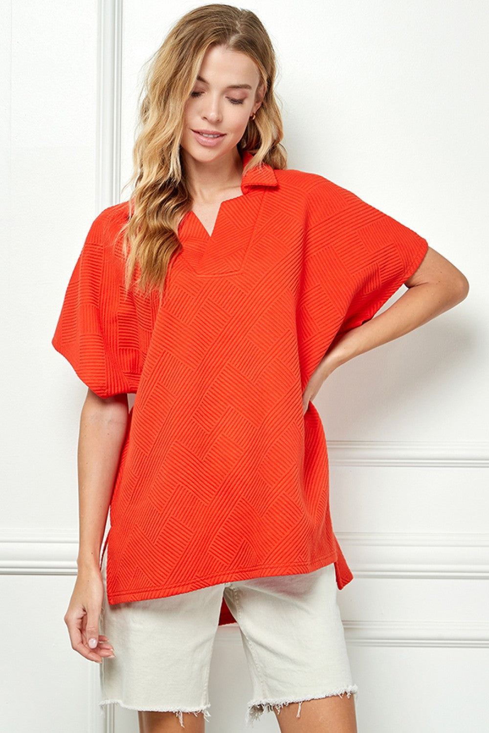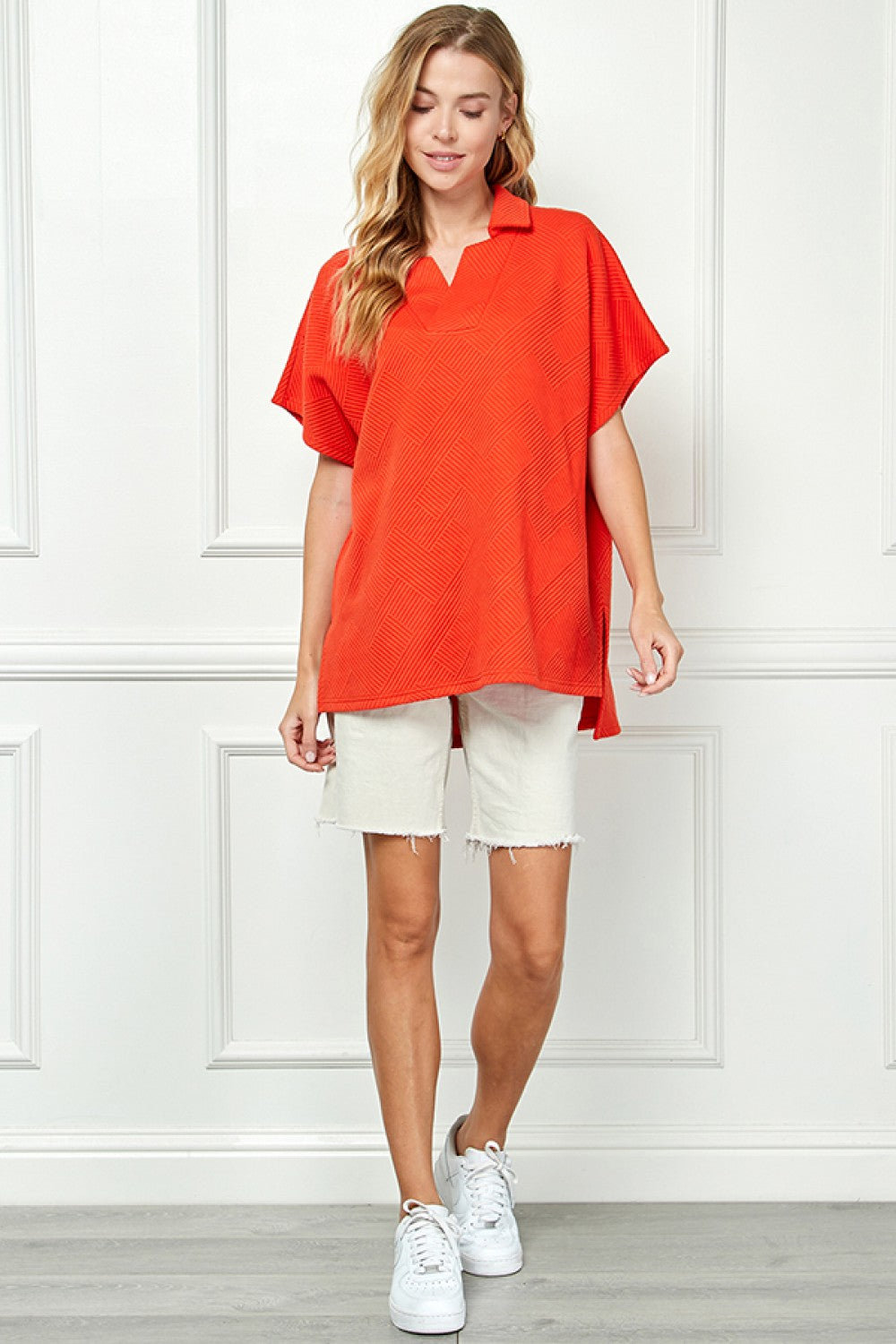 Elevate your wardrobe with our Notch Collar Textured Drop Shoulder Top. Featuring a stylish notch collar and a unique textured design, this top is perfect for any occasion. The hi-lo hem adds a modern touch while the drop shoulder design provides a comfortable fit. Upgrade your style and stand out from the crowd with this must-have top.