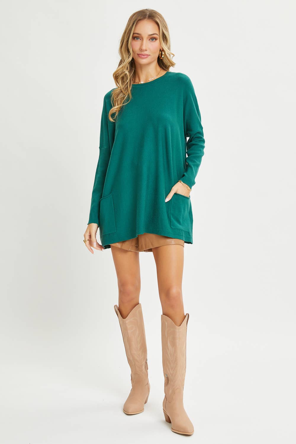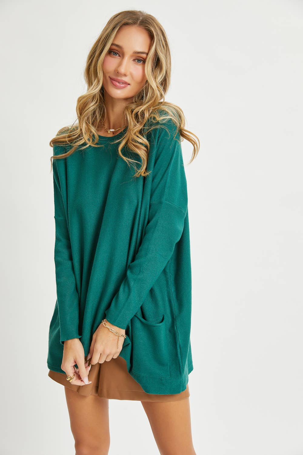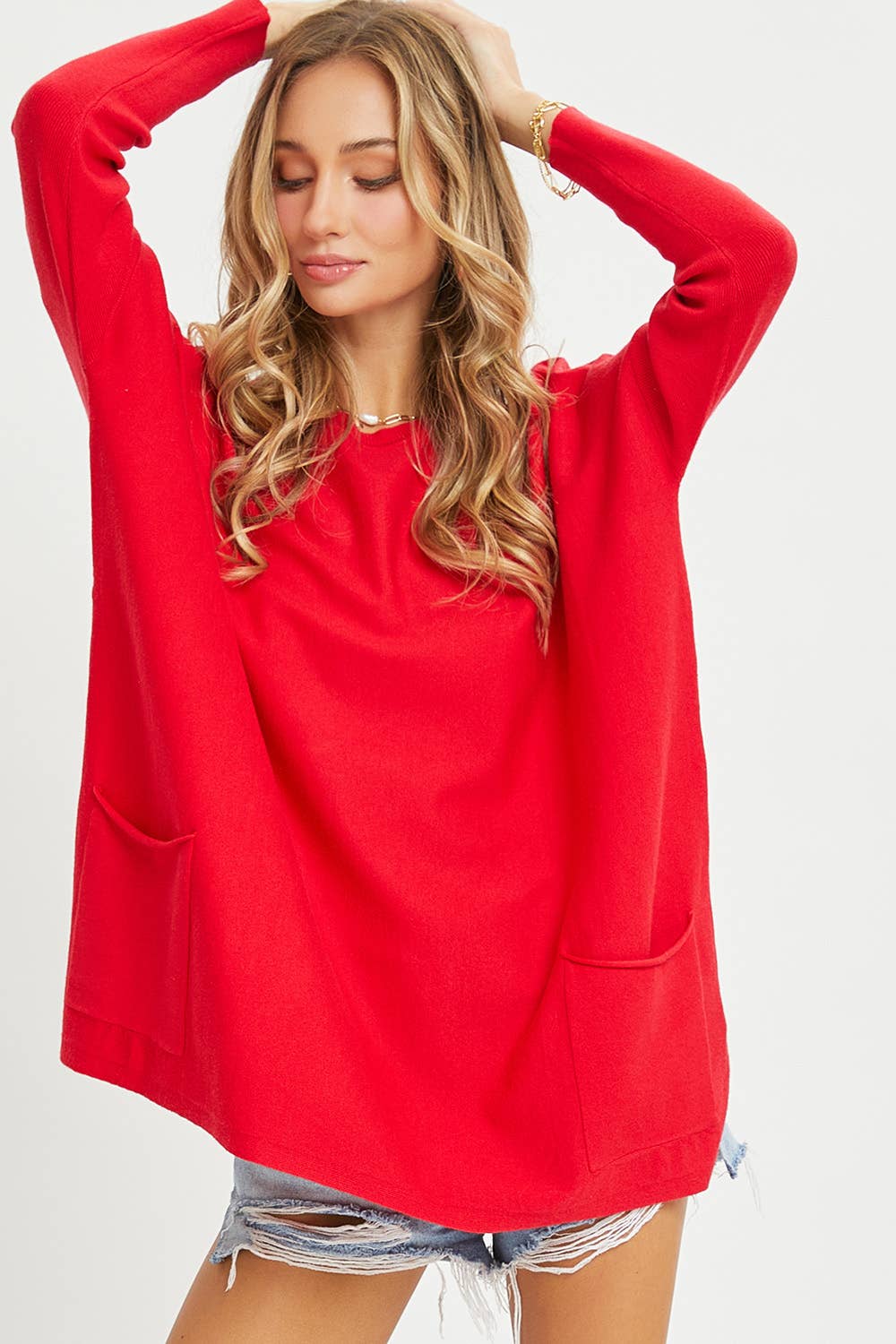 Stay cozy and comfortable in our Oversize/Loose Fit Round Neck Sweater. With a soft and stretchy fabrication, dropped shoulders, and front pockets, this stylish sweater drapes beautifully for the perfect go-to piece. From season-to-season, this pullover is a must-have for any wardrobe.