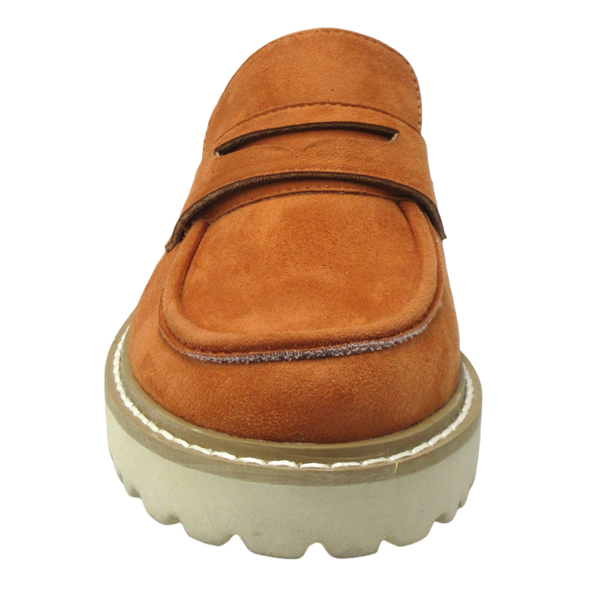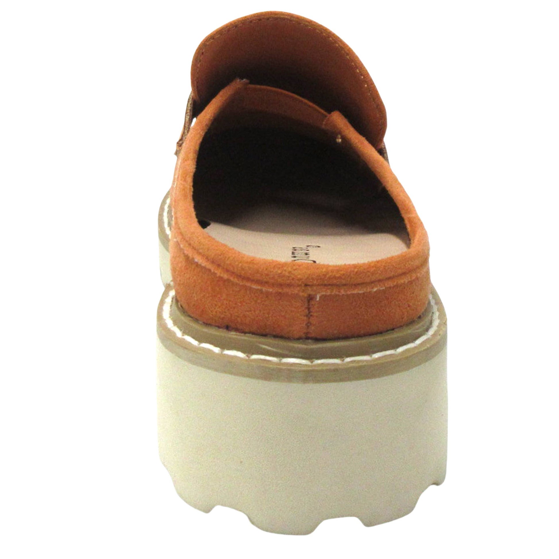 Classic meets cool ✨ The Whiskey Platform Mule Loafers blend timeless loafer style with the effortless ease of a slip-on mule. A soft whiskey faux suede upper, contrasting cream lug sole, and subtle stitched details deliver a polished yet modern look. The cushioned insole and chunky platform give you comfort, height, and just the right amount of edge for everyday wear.