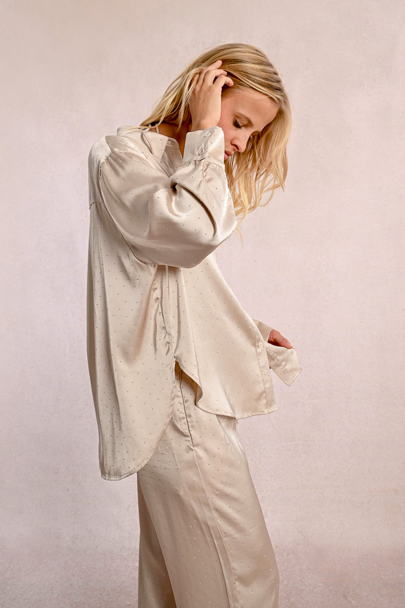 Rhinestone Embellished Satin Blouse