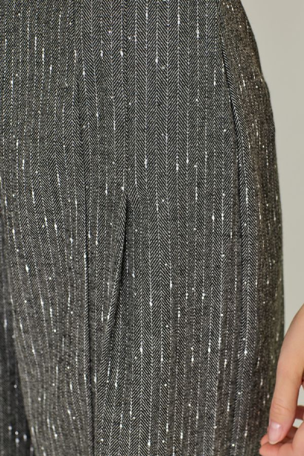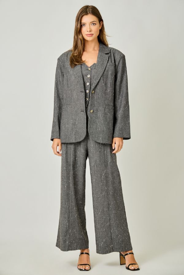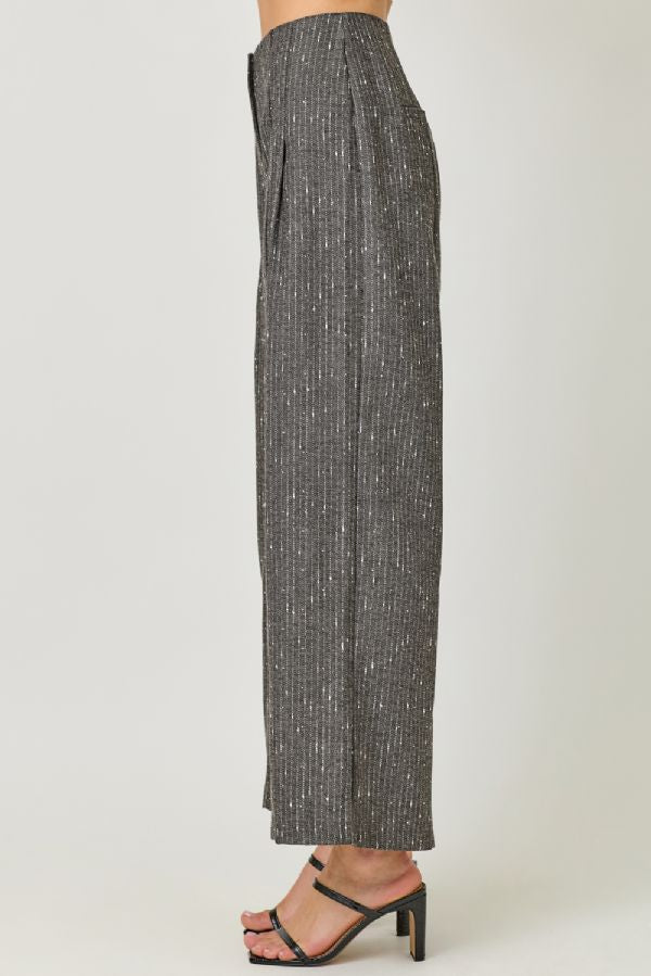Classic pinstripes get a dazzling upgrade in these wide-leg trousers sprinkled with mini gemstones. Designed with a sleek hook-and-zipper closure and handy back pockets, they’re tailored yet full of personality. Full-length with a flattering drape, these trousers are perfect for adding a touch of sparkle to your 9-to-5—or your night out on the town. Because who says workwear can’t shine?