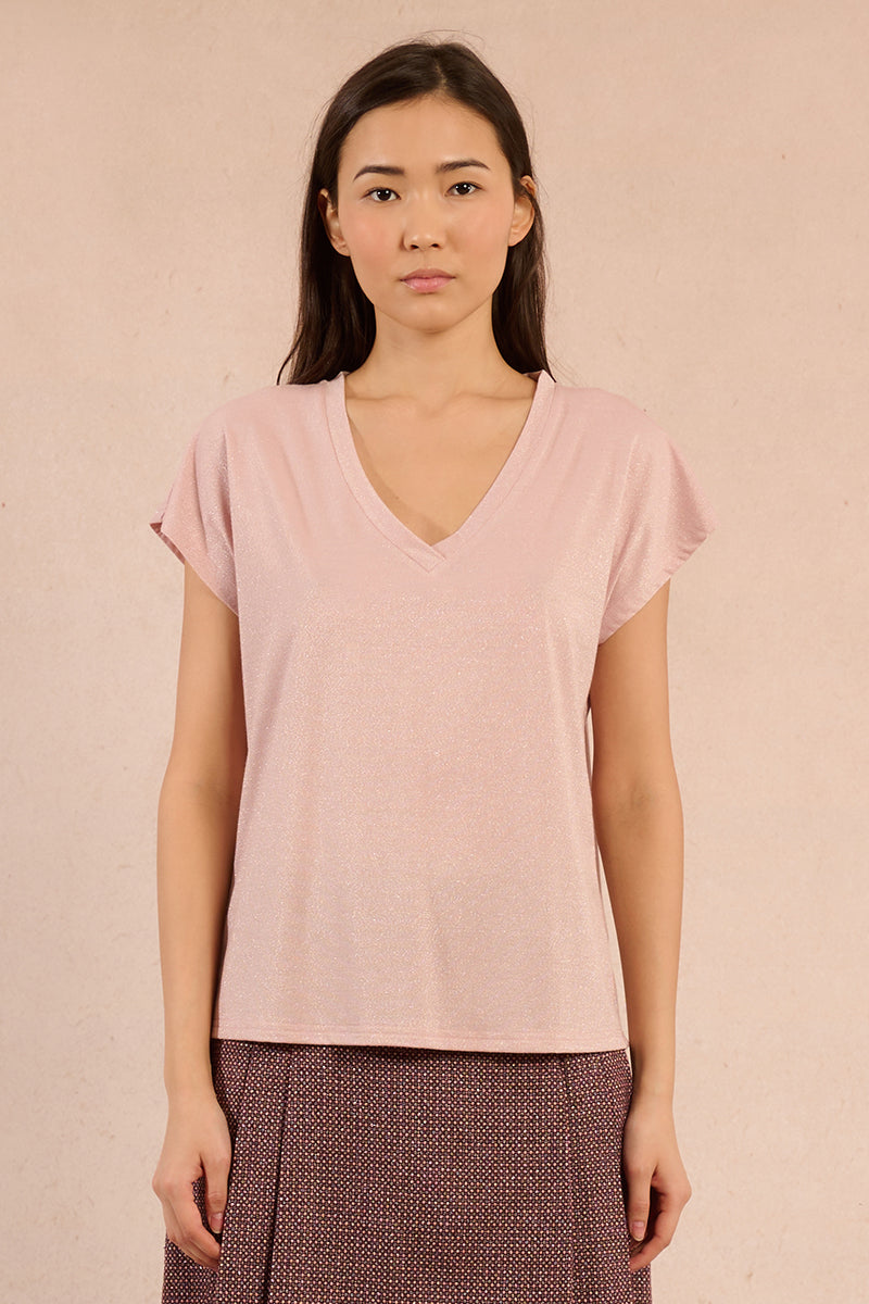 Add a little sparkle to your everyday! This shimmery cap sleeve top features a flattering v-neckline and a touch of metallic sheen that catches the light just right. Dress it up with sleek trousers for a night out or pair it with your favorite Judy Blues for a casually glam look.