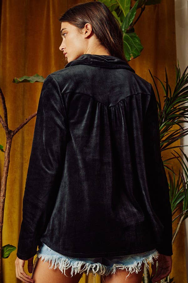Unleash your quirky style with our Loose Fit Stretched Velvet Shirt! With a spread collar, long sleeves, and button-front closure, this shirt offers both comfort and style. Pretty pleating throughout adds shape, while chest pockets and a curved hemline add unique details. Perfect for those who don't take themselves too seriously.