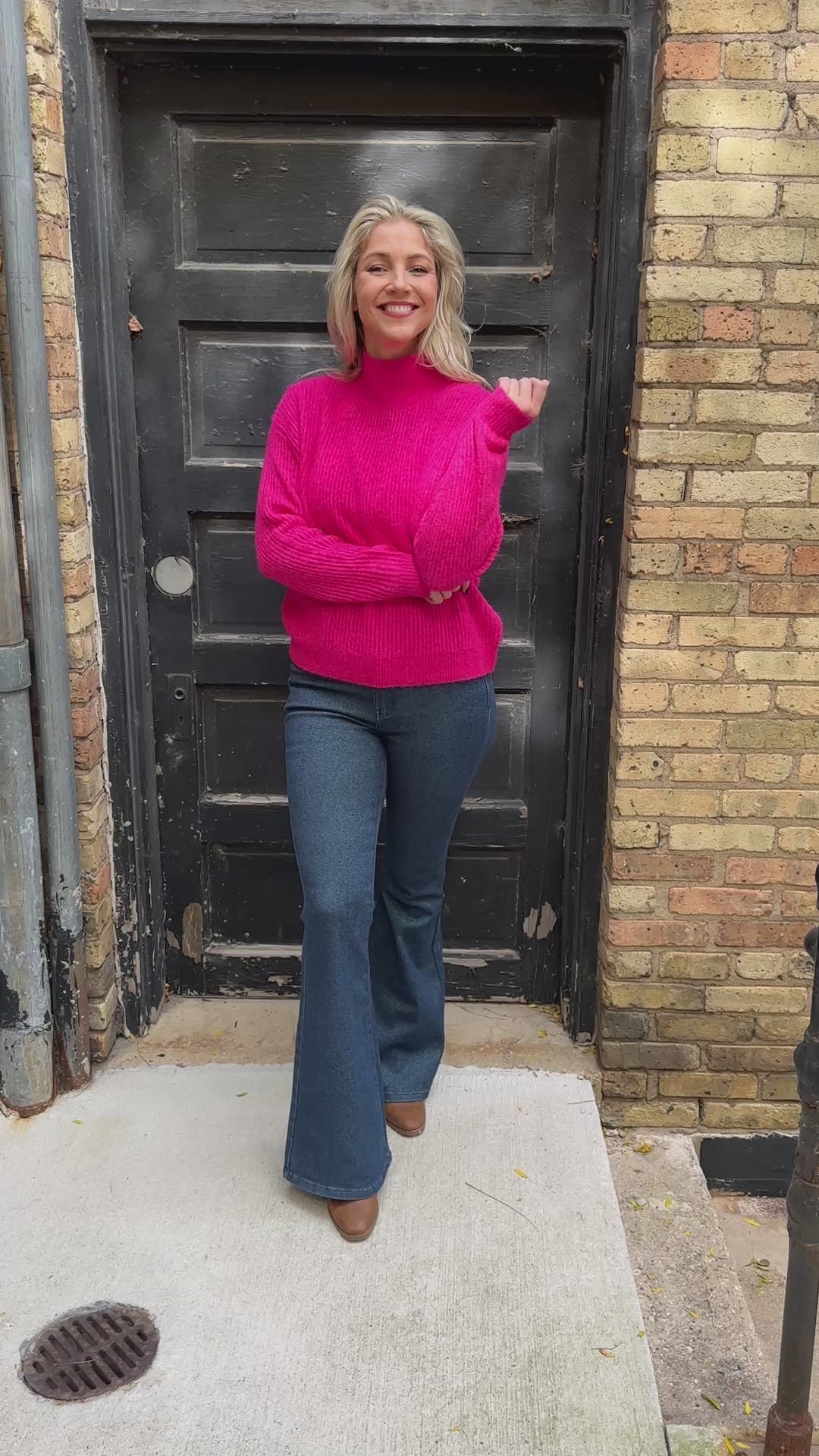 Bright, bold, and beautifully cozy — our Think Pink Ribbed Mock Neck Sweater is here to make a statement! This thick, ribbed knit beauty in vibrant fuchsia is as warm as it is eye-catching. The mock neck adds a touch of chic sophistication, while the snug yet comfy fit makes it perfect for pairing with jeans or a cute skirt. It’s the pop of color your fall wardrobe’s been waiting for!