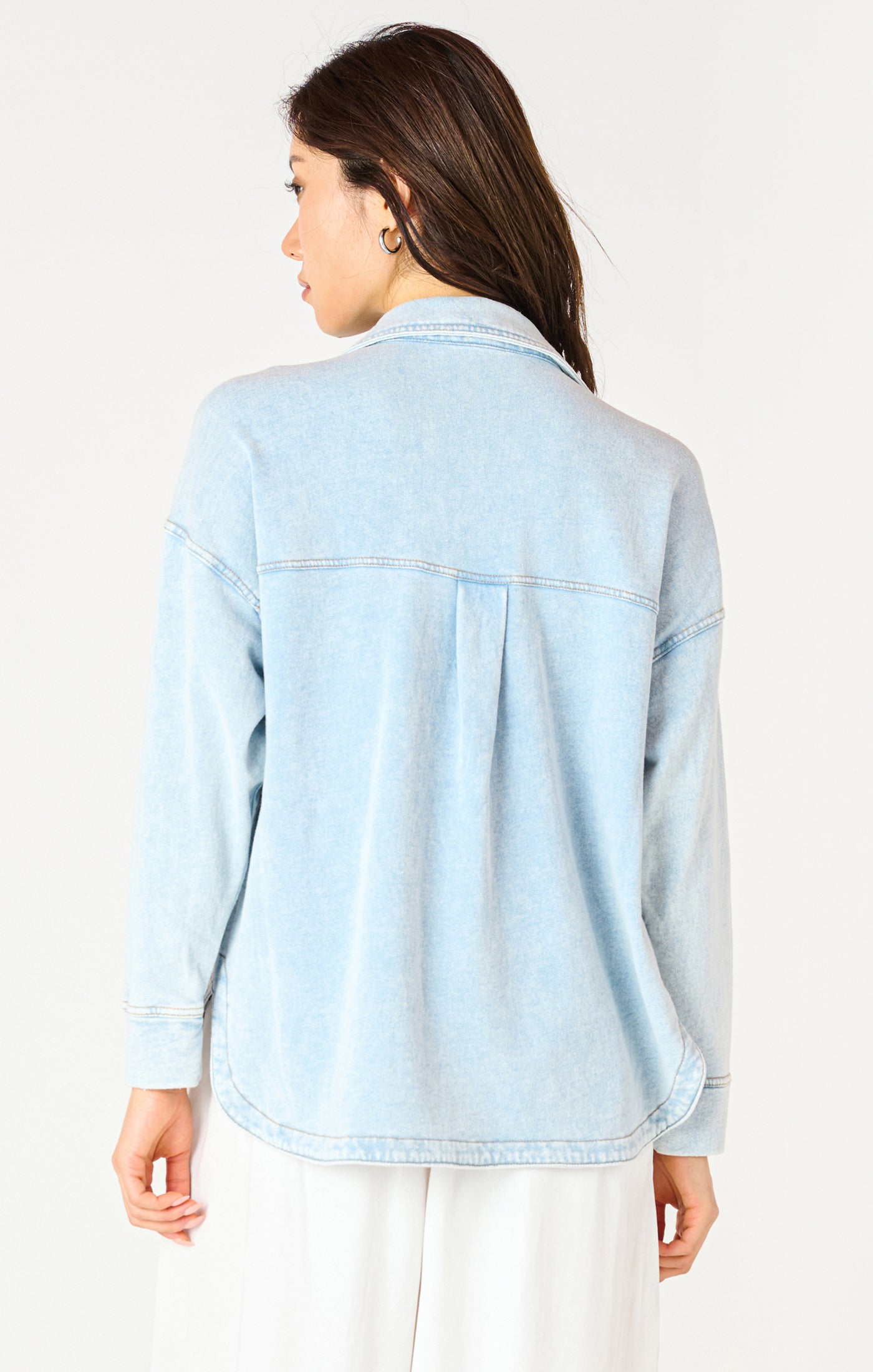 Joy McLean Washed Light Blue Knit Denim Jacket